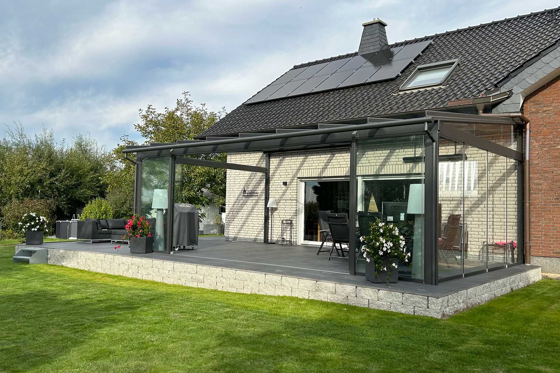 Bu proje, yaşam alanı ile bahçe arasındaki sınırı ortadan kaldıran, yüksek performanslı cam kış bahçesi sistemi olarak tasarlanmıştır. Şeffaf cephe kurgusu ve açılabilir cam elemanlar sayesinde mekân; gün ışığı, hava ve çevreyle sürekli etkileşim hâlindedir.